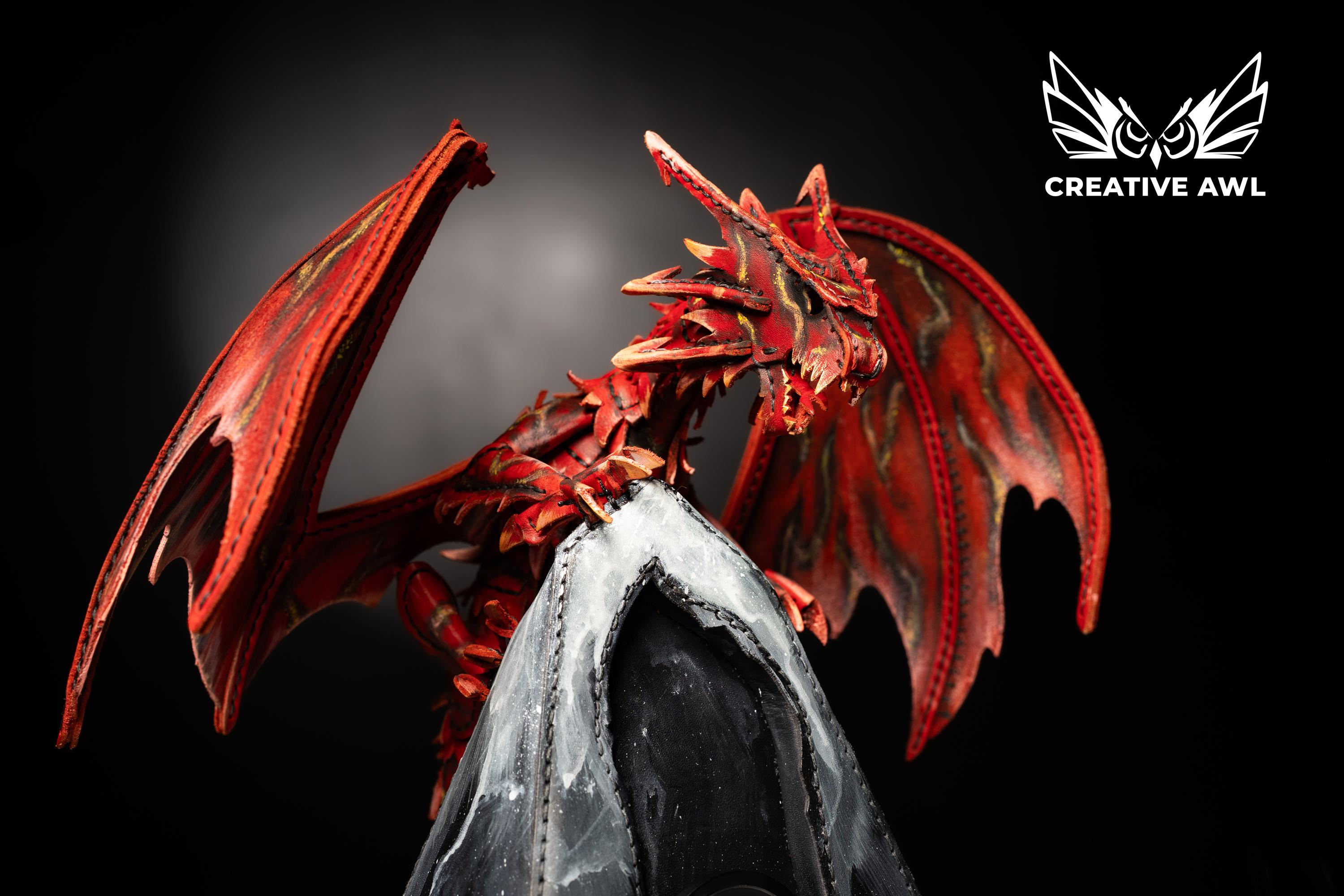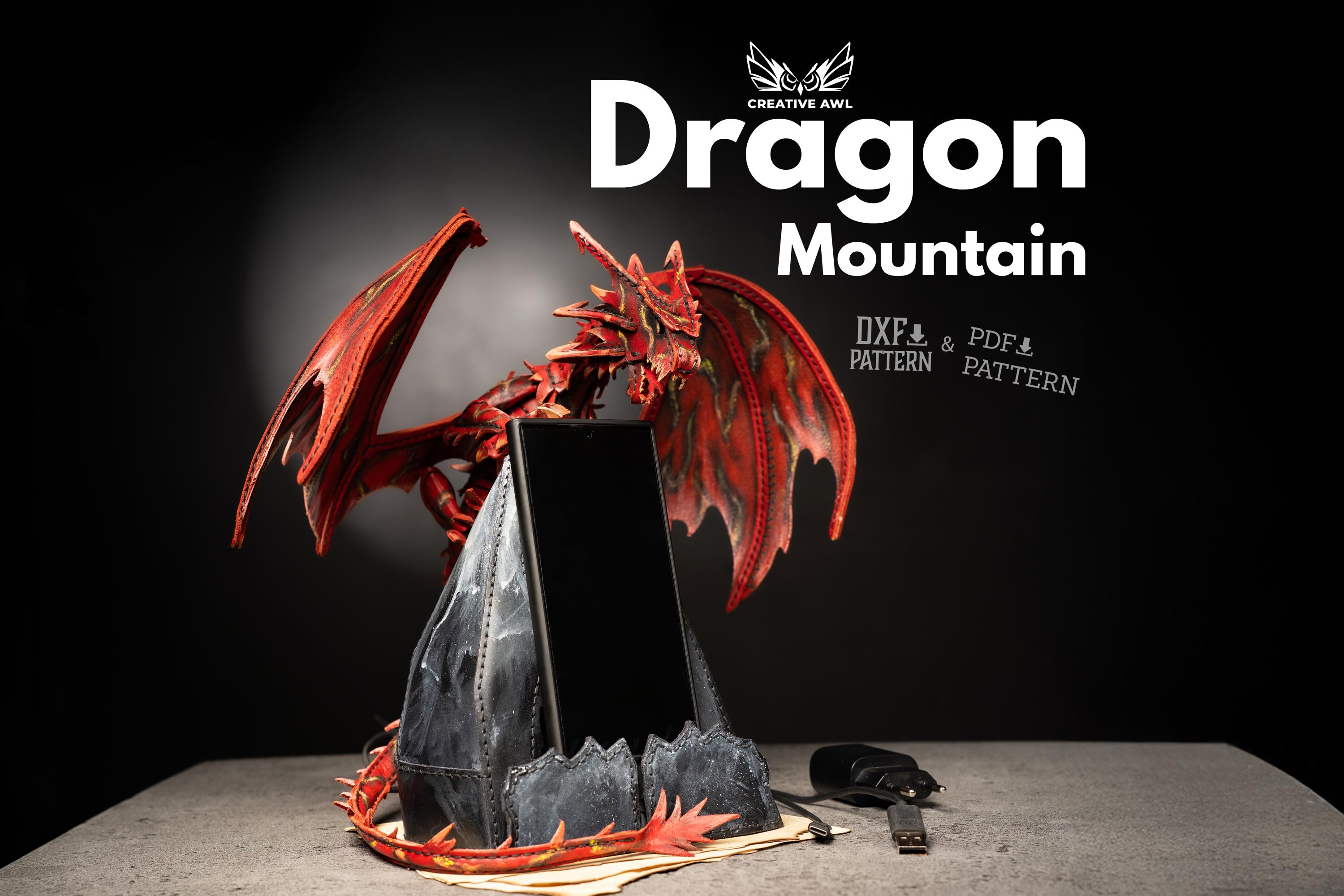 🐉 Dragon Mountain Phone Dock Pattern | Epic Leather Sculpture Meets Functional Art | Transform Your Desk Into A Fantasy Realm