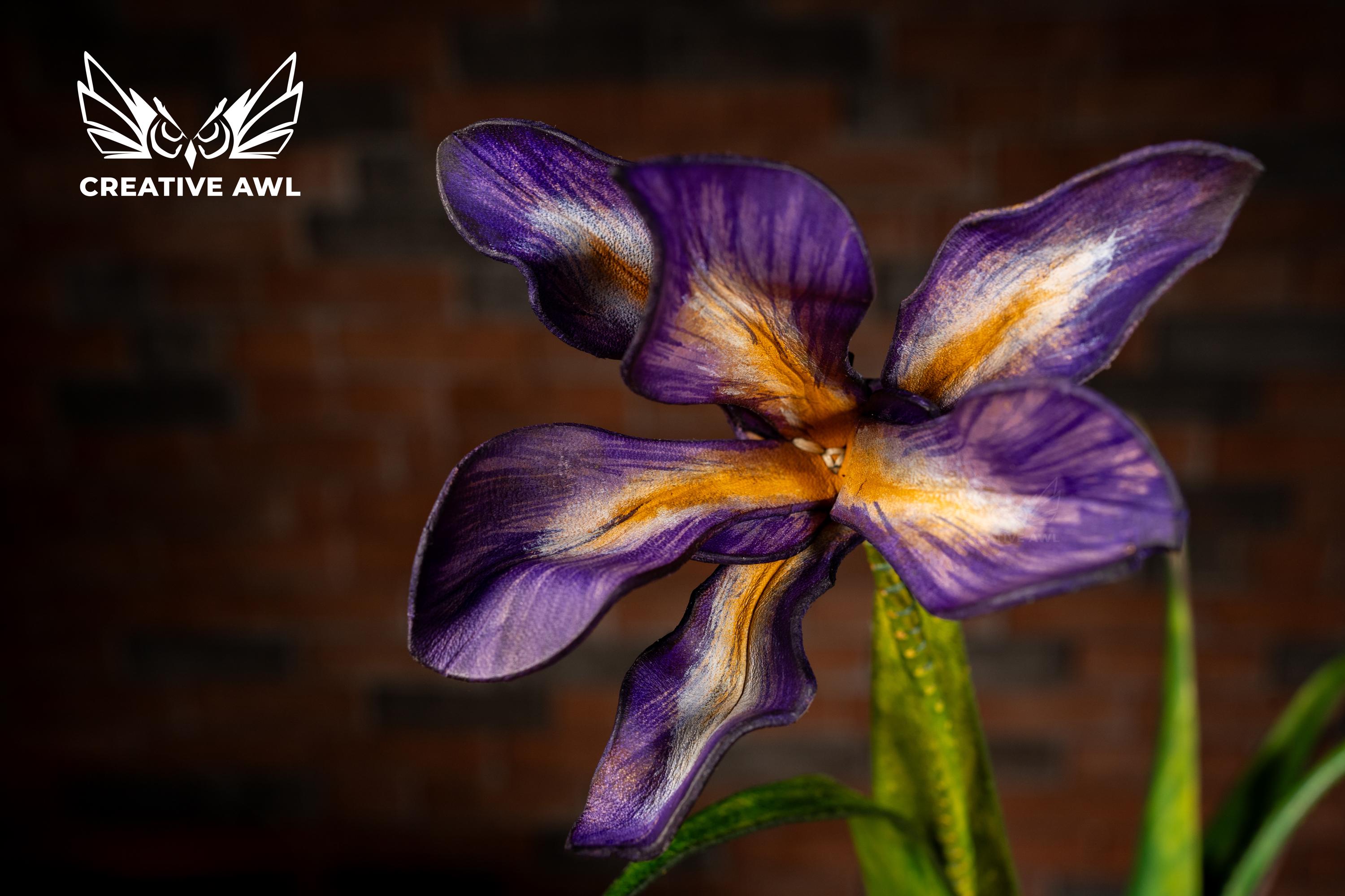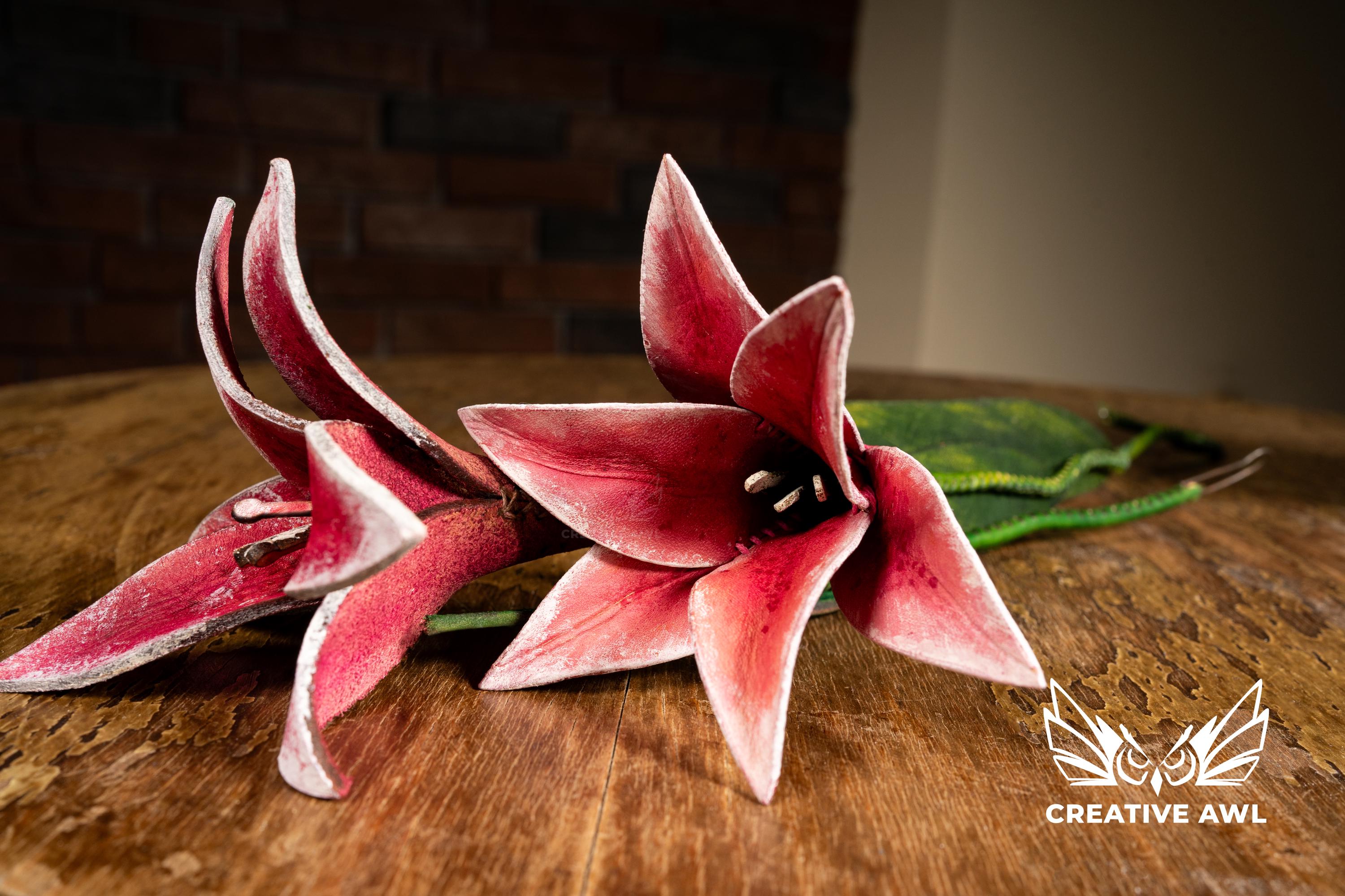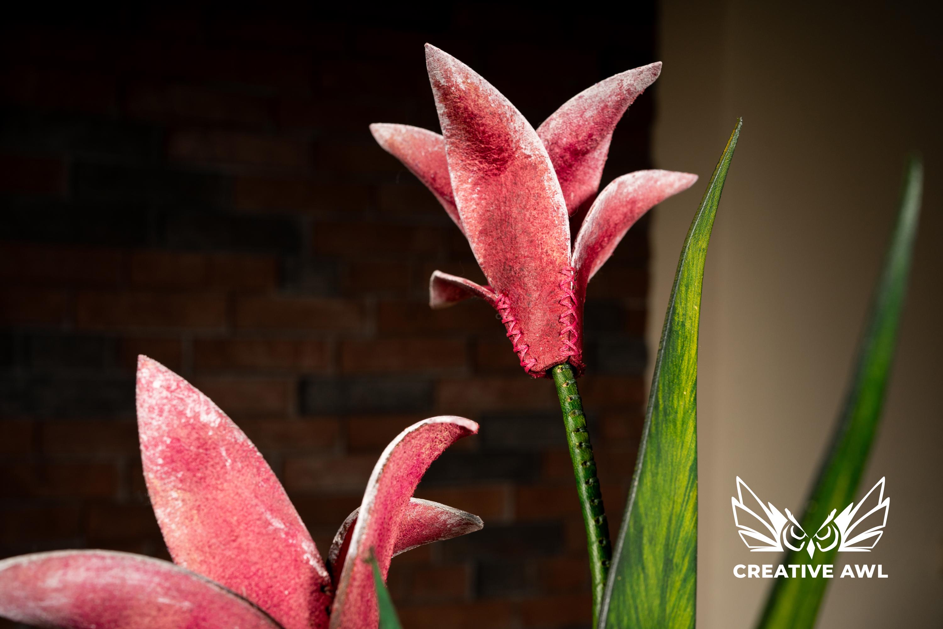 Painted leather technique that brings each petal to life with stunning depth