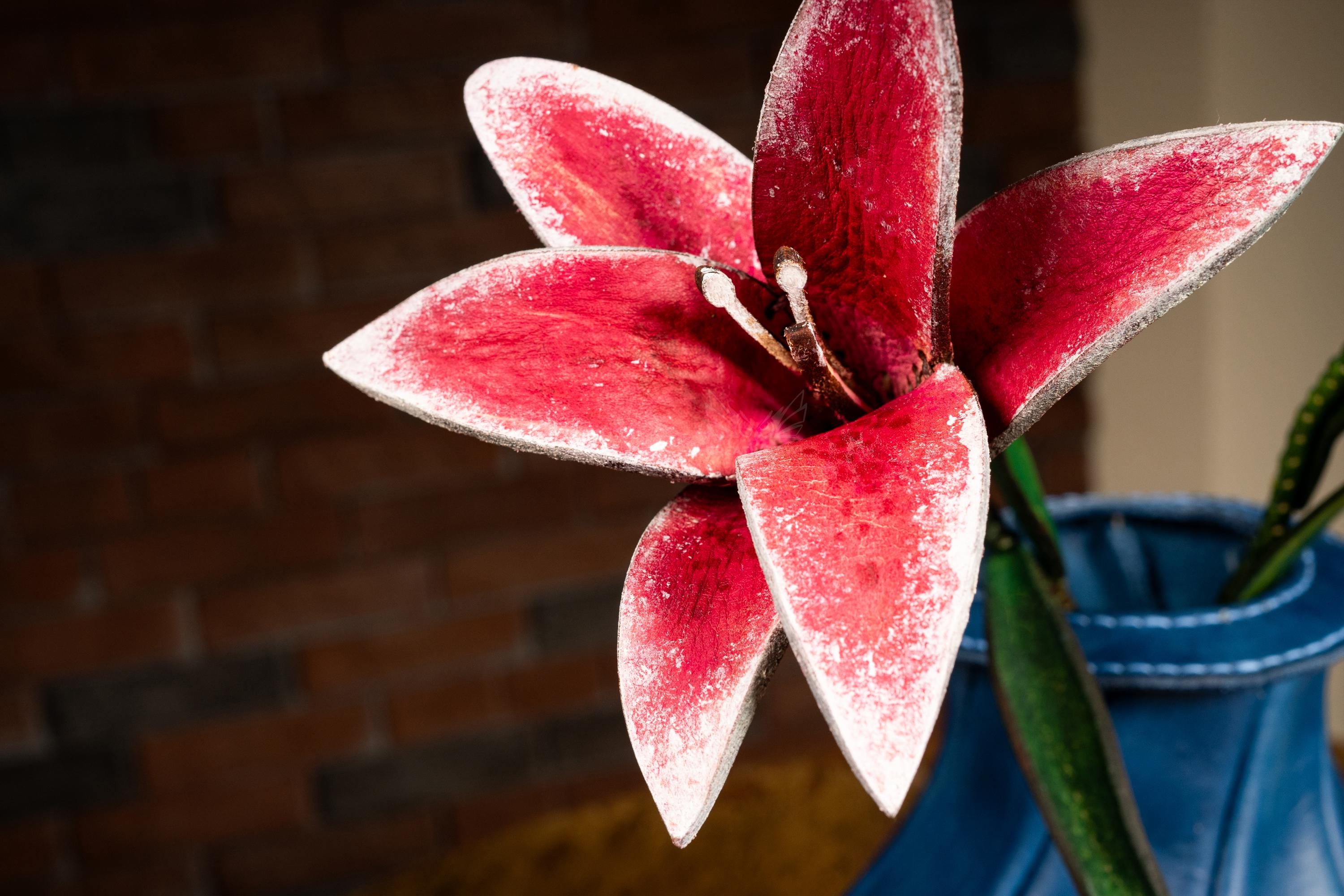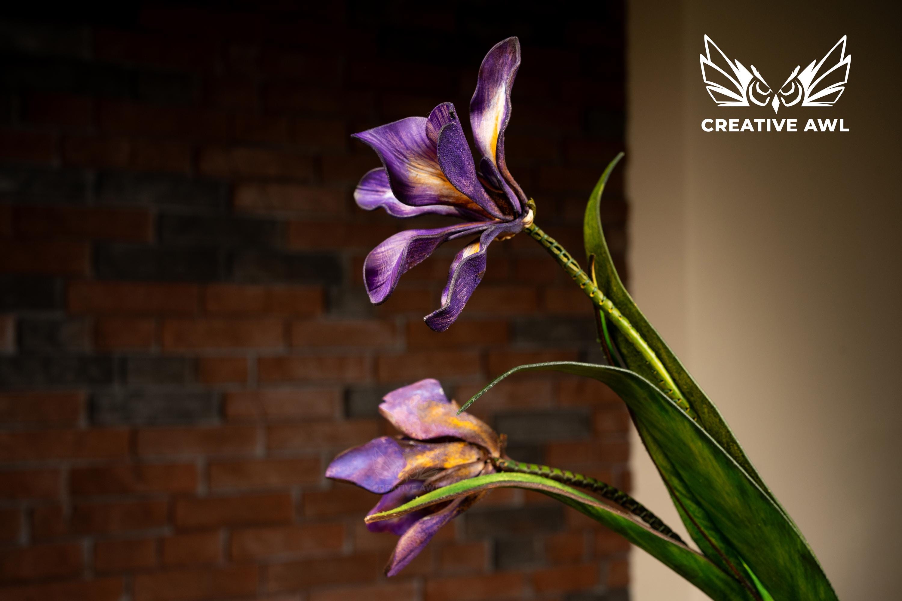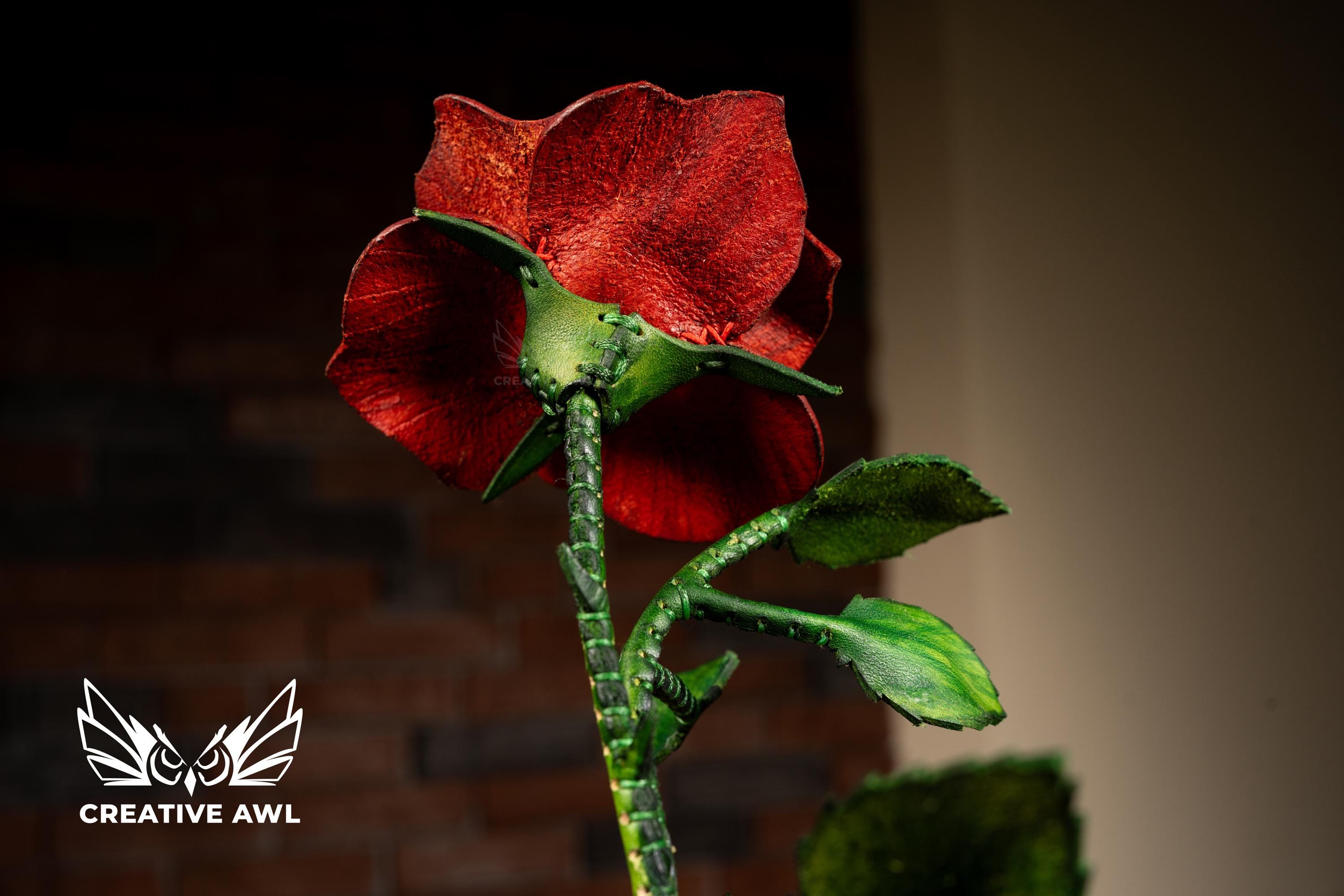 Painted leather technique that brings each petal to life with stunning depth