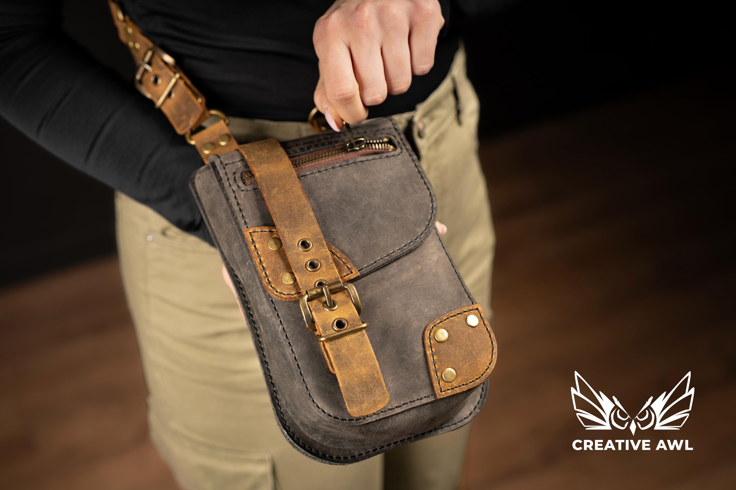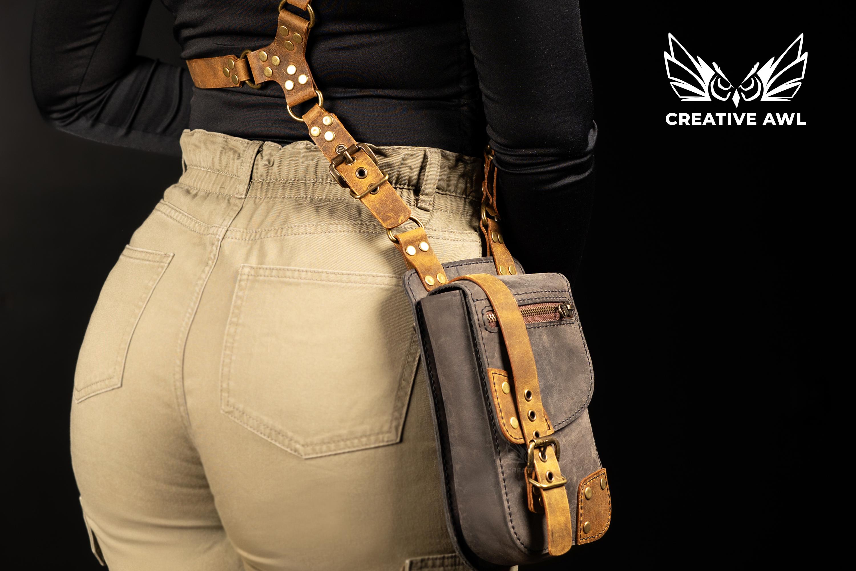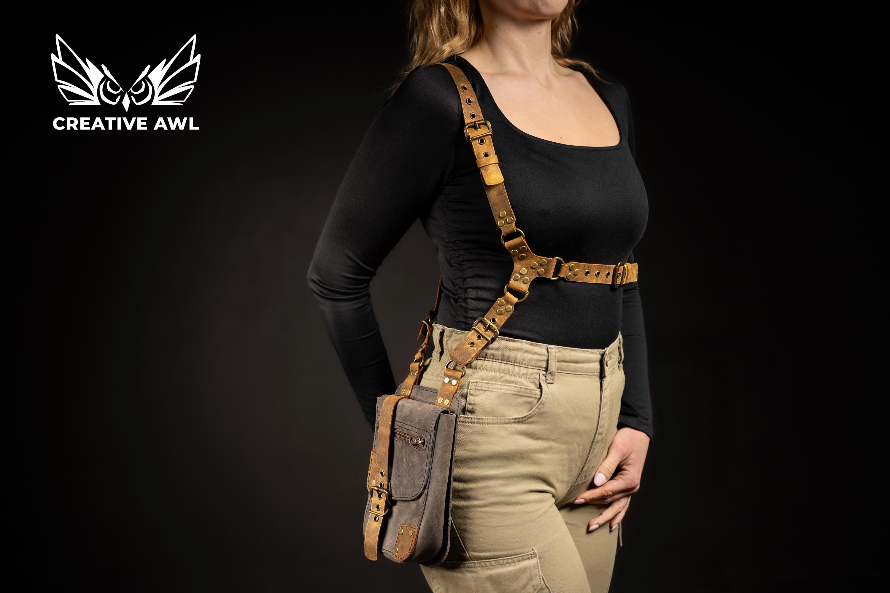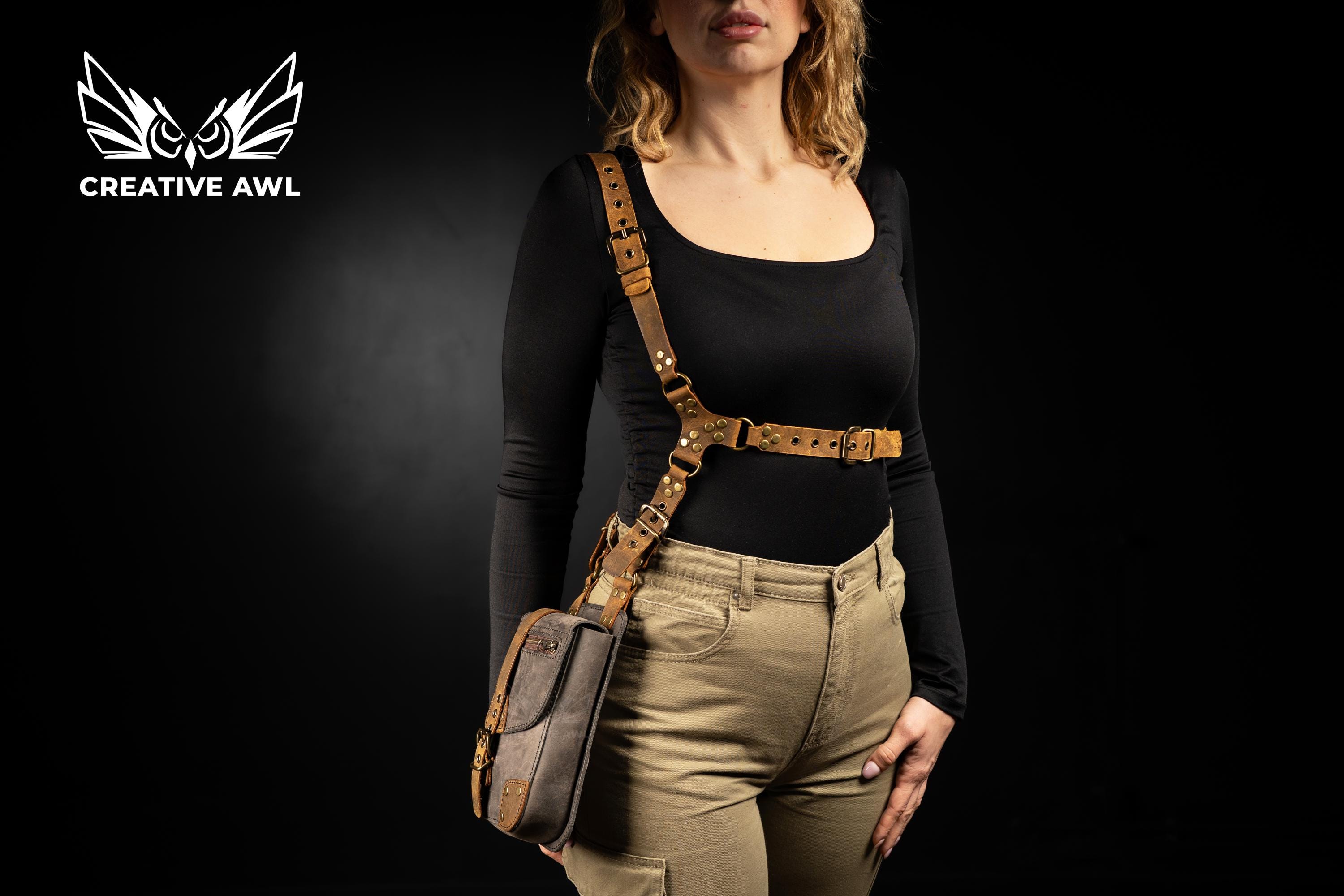 🎸 Punk Utility Bag | Hand-Stitched Leather Harness Crossbody | Bold Festival Statement Piece