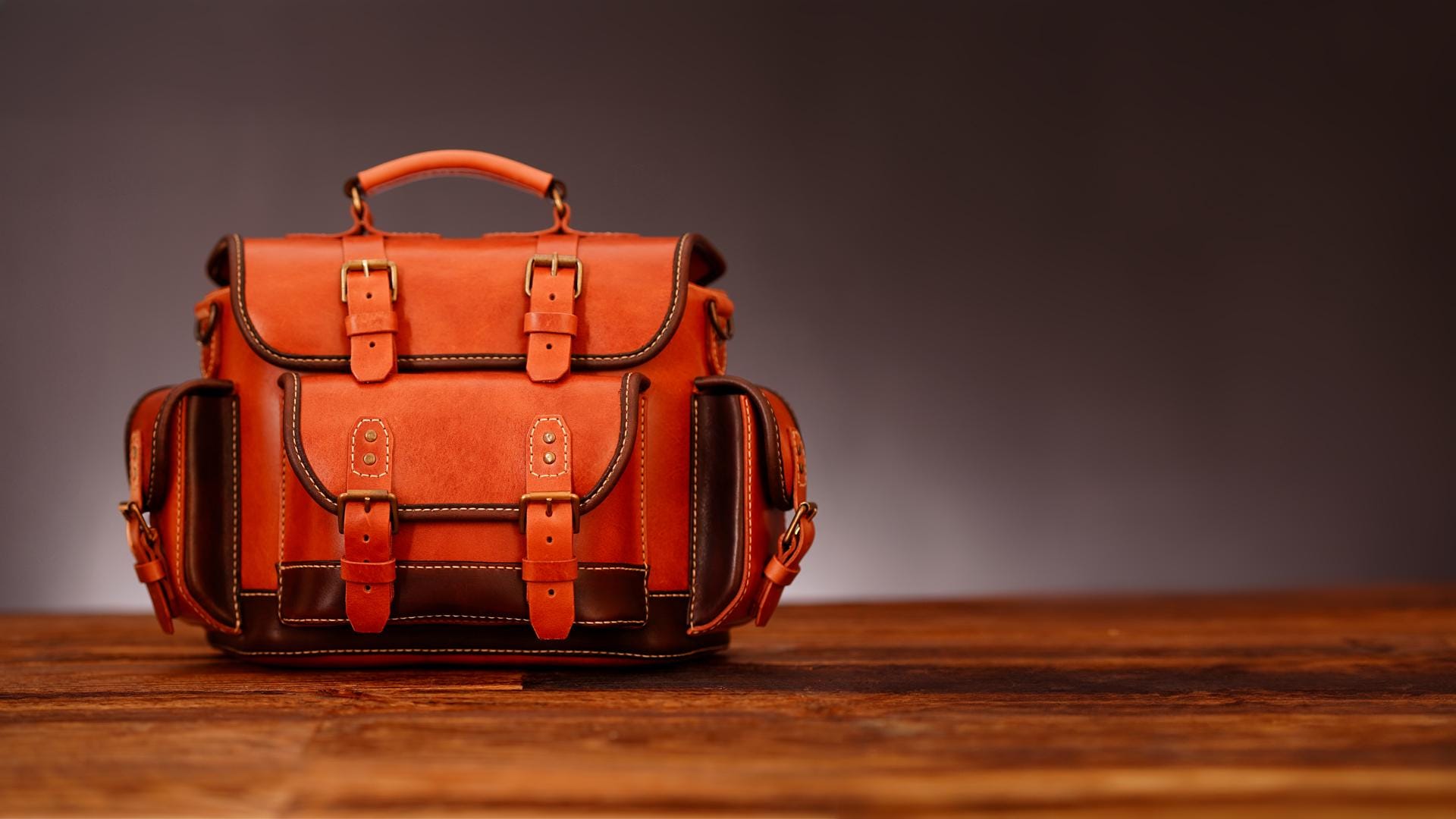The front pockets, side compartments, and solid top handle make this bag both practical and distinctive. Every detail is designed to combine traditional leather craftsmanship with a durable, elegant everyday form.